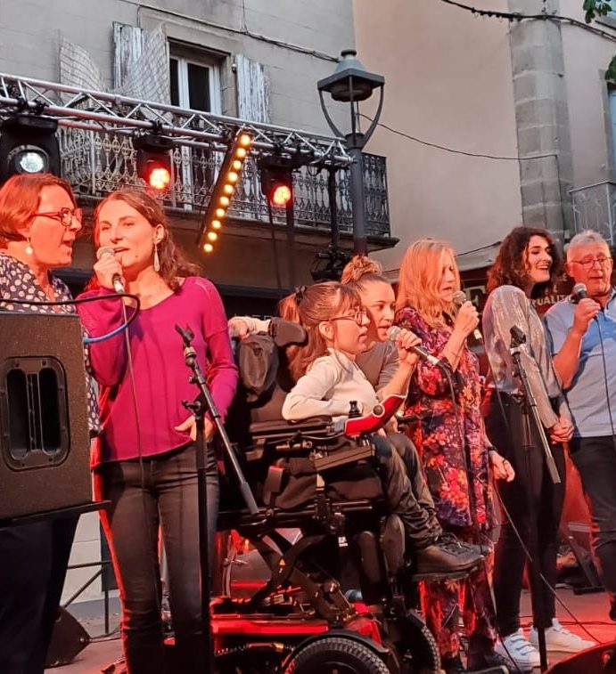 Chacun.e apporte sa pierre. Je vous apporte échauffements, explorations et jeux vocaux, chants collectifs … Vous apportez votre voix, vos envies, vos propositions de chant à 2, à 3 etc ou en collectif. Ensemble nous construisons une dynamique de groupe, de partage, d’intéractions et de complémentarités entre vos voix. Ainsi dans le collectif, chacun.e s’exprime, se singularise, prend confiance et progresse dans la joie et le plaisir de chanter.